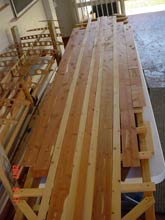 | Fig. 2: Planks ready for joining. This is the bottom, with cedar, fir and redwood. |