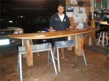 Like most wooden boat builders, when looking at the finished result I see the flaws and imperfections first, and immediately plan on what I’ll do different next time. There are many variations on the construction technique – all one needs to do is perform an internet search for “wood surfboard building” to find a variety of information sources. I was fortunate to receive help from the folks at Grain Surfboards, whose kits come with a thorough instruction manual which covers the building process in great detail. Jack Young has a PDF book on hollow board construction which provides all the info in great detail for building a number of designs. Boat builder Gary Dierking has a book on building sailing canoes (available in the Duckworks store - click here) that is a must-have for anyone interested in boatbuilding. All three of these sources took my questions via e-mail and responded with essential info, and deserve thanks and credit for the success of this project.