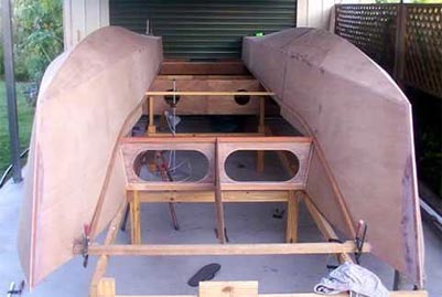 The construction uses the deck as a flat to build the structure on - the structures are light, using thinner ply than most are used to but have proved to be extremely robust over hundreds of boats and tens of thousands of cruised miles.