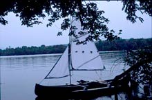 These photos here were taken before I realized the lee board wasn't down and the sail wasn't properly secured to the mast. Even so, she tacked back and forth (though much nicer once I put the lee board down!).