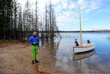 We launched it on Emerald Lake, a small lake about 90 minutes north and a bit west of Saskatoon, Saskatchewan. When I was growing up we had a cabin on this lake and I had a wonderful time spending my summers there. My Dad had built a small fishing/rowing boat he called UGO IGO (you go, I go) and I rowed that boat all over the lake with our black lab as co-pilot. I have named this boat "Ugo Igo Too" in memory of my Dad as an homage and to thank him for the boat he built that I had so much fun in when I was a boy.