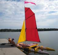 Attached is a pic of my cat fully rigged at the upper end of Grand Lake in Oklahoma. This was only the second time it's been in the water. Little wind, but at least I got to test it without breaking it.