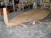 My garage has become an impromptu boatyard where the keel and bottom boards of a Stevenson Pocket Cruiser are in place.