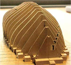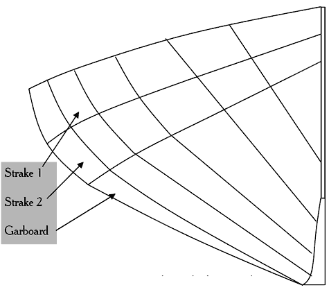 The bottom strake or ‘garboard’ will be straight until the fifth and sixth molds shown here. The arch can only