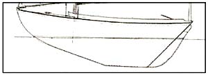 slack bilges—somewhat like a dory—so the generous sail are is needed to move it along, and the deep ballasted