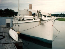 | Resolution at the Montgomery yard around 1992; beside it is Kotick, the Bolger's kayak built for him by Dynamite Payson. |