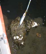 This mess only comes off with a sharp knife or deliberately palpating the slime. Granted, this anchor doesn’t have ideal Danforth proportions, but any anchor of this type seems to have trouble with dense weeds. I guess the shape of the flukes sort of funnel the weeds in.