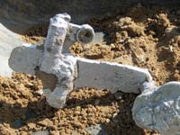 Now the real work starts. The sand near the casting gets baked dry, so it needs to be reconditioned. While the casting cools more I break it up with a hammer, add a tiny bit of water and mash it in. The water has to be forcibly smeared into the tiny grains of clay between the grains of sand. If you add too much water the steam will destroy your castings and cause dangerous bubbling. It should feel about like brown sugar. Unfortunately, it takes quite a bit of brute force mashing to get it there. People who do a lot of this end up building powered sand mullers.