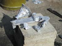 Let it cool for a while before attempting to shake out the mold. This is not just for safety—hot metal oxidizes much faster, and you get a poorer finish. After we shake it out it looks like this.