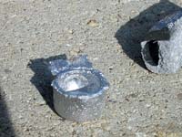 Here’s the crucible waiting its turn. Remember to be careful about setting it on concrete when it’s hot. If you spill molten metal on concrete, it can explode. (I said that already and I’ll say it again. It bears repeating.) I have fire brick to set the hot crucible on.