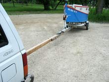 Go easy on the gas with this tongue extension, though, or you’ll split the lumber. I wouldn’t try using this wooden version for any trailer over 2,000 lbs. Steel could be made stronger, but heavier, and it is plenty heavy enough as it is. Also, this extension is a whopping 17 feet long when assembled, so it is nice to be able to easily pull a few bolts to knock it down to 10’ for cartopping. I left it one piece, and it just barely fits.
