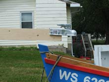 What a triumphant feeling it is to find that yard sale boat trailer for $50. But in the glow of victory we often fail to notice that the cheap trailer is narrow! So narrow, in fact, that the boat ends up riding above the wheels. Which means above the fenders. Which means too high! Such was the case with my AF4B when I got it. The builder had made smaller wooden fenders to mitigate (but not eliminate) the problem.