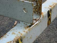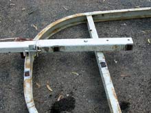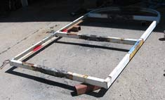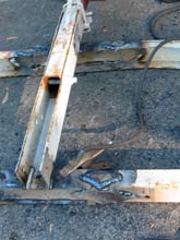 It I support the frame where the axle would go and put my full 185 lbs on one rear corner, that corner drops 1”. One might think that all small boat trailers are floppy, but that little Shore Land’r trailer you saw riding on top of this was very stiff! Better design, I guess. Anyway, a floppy trailer ends up relying on the boat to stiffen it, so this motion represents loads that get transferred to the hull. Such motion can also ultimately fatigue the metal and cause cracks. Let’s see if we can reduce it.