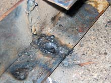 However after welding in two of these I repeated the same test. No change!! The gussets just went up and down along with the corner. Either we needed a bigger triangle or much stiffer steel. I tested that theory.