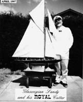 An exceptional RC sailing model of Britannia was made by Scotsman, Sandy Cousins with whom I had the pleasure of communicating for several years prior to his passing and the photograph of Sandy in naval attire with the model above (which I have used before) was sent to me by him, as was the one of the model under sail.