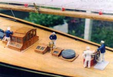 Enter Bill Letten who in the 2006-2007 period built multiple models of the famous yacht which featured in the December 2007 issue of Marine Modelling International. Sandy Cousins plans for the model (Plan Ref MAR253O) are still available from Traplet Plans Service. Several photos Letten’s versions are shown above as well as another fine model of the boat by Phil Anstiss of Britain whose model at 97” long is also shown above.