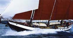 An exciting 3 masted gaff-rigged schooner is the 80’ long Trinovante and I somehow feel that the photos of her reproduced here kind courtesy of her owners may well serve the purpose of creating a spark of interest to ship modelers in our midst, for she would certainly be an RC sailing model worth creating.
