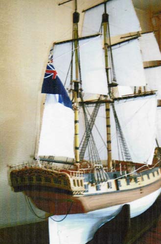 Jim Bennett of Blackpool, England, a member of the Fleetwood Model Boat Club has built a 1/32, 68” long sailing model of the 28 Gun HMS Liverpool, partly visible in this photograph sent to me. I have never been able to get a photograph of her sailing, so enjoy this one anyway – it is the best I can do
