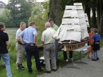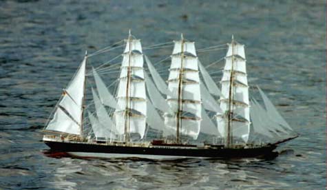 One of the absolutely finest boat modelers in the world has to be Andreas Gondesen of Ausackerwesterholz in Germany who for more than 25 years has specialized in sailing ships. I have written about him before in the now defunct magazine, Windling World and his RC sailing models of both the Pamir and `Old Ironsides’ the Constitution shown above are tributes to the skill and the patience of this modeller. His 2 metre long Constitution with its hull made of walnut took him 3 years and 3,000 hours and is a highly acclaimed working model of the famous frigate, one of six warships authorized by the US Congress in 1794.  Gondesen’s Pamir built to a scale of 1:75 and with a length of 1,52m has RC functions controlling rudder, foremast yard braces, main and mizzen braces and spanker boom pulling over the jibs. It shows her as she was in 1957 when she capsized and sank in the Atlantic.