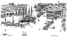 I worked in Bridgetown and the Careenage activity drew me back to my painting, and my sketching, and watercolours which tourists seemed to find of interest and some bought.  The pen and ink drawing of mine (above) actually became a popular print sought by tourists in the years that I was with BOAC/British Airways.  It shows the Francis Smith outside of the Mary M Lewis, the writer in his MGB sports car in the lower left corner of the drawing included just for posterity.  That indeed is a very long  time ago.