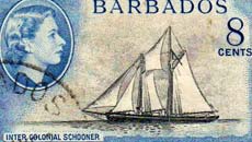 Three  very `Bluenose-ish’ looking trading schooners brought rice and sugar in bags from my original homeland of British Guiana regularly to Barbados, in fact the schooner Francis Smith I was told or I read somewhere (and my memory is still with me!) was a Bluenose originally out of the port town of Lunenburg in Nova Scotia. She was always beautifully maintained by her Captain, Laurie Hassell I was particularly keen on the grey-hulled Mary M Lewis and got to know her Owner/Captain Ivan Marshall in whose personal care a pet Guyana parrot arrived for me on one of the schooner’s voyages.