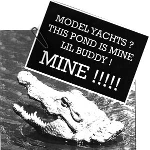 This is nothing but fiction and Hannibal does not exist, certainly not in New Zealand where my photograph was taken of the gator announcing ownership and sole water usage rights of the pond. The once RC reptile head was made by the late Bob Walters, a member of our Auckland Ancient Mariners and these days lurks menacingly in the garden bushes of a West Harbour model yachtsman's home.
