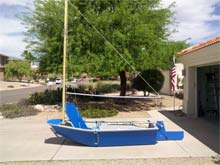 Pollywog final assembly, daggerboard up, rudder raised. Waiting for a sail and water! |