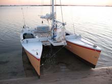 Slider seems to be a completely new kind of beach cruiser. So far as I know, Slider is one-of-a-kind. There are other 16 ft. cruising cats, but none of them are open boats with in-hull seating.
