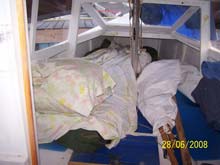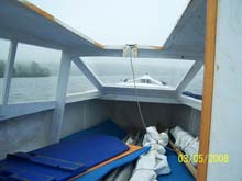Sails laid inside - new dagger-board on the port cabin seat - anchor well forward. There are compartment under cabin seats and cockpit seats .. all kinds of room.