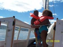 There were a couple of other Summer sails on Nockamixon, alone and with friends, and I would have sailed more in August, but I was busy building a Michalack Toto for and with my son-in-law.  This was a snap compared to the year before, and we pushed so we could take both boats up to Lake George. This is the  destination which spawned the whole concept of designing a pocket cruiser and using that old Snark Wildflower rig.  Come early Sept. 08’ we finally took them both to Trout House, Hague, NY.  The lake there is 3 mi. across and the wind comes up 15 - 18 miles or open water from the South at mid-morning most days.  We dedicated the Toto the “CamHill”  (my daughter) and watched with pleasure as Kareem proved her seaworthiness.