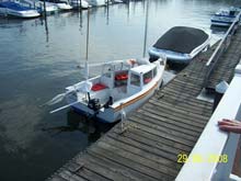 And after all the excitement, docked in the moonlight - (Look close: you can see the 4” bridge deck w/ cup holders & stowage below)