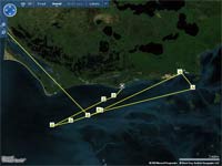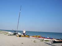 There is kind of a mystery going on with Jarhead. As you can see in the image of his track at the right (click to enlarge), He left Flamingo heading southeast toward the first Florida Bay channel - he had told Gary he was going across rather than around - but suddenly turned west as if he had changed his mind and decided to go around after all. Then, just as suddenly, he turned back toward the east, ending up, aparently, on the beach at East Cape (the darker icon represents the latest position - the icons represent spot "I'm Ok" signals. You can check his progress by going to the mapper, and selecting 'Jarhead" from the drop-down there). Did he break something and then head back only to run out of steam and stop for the night? Did he change his mind about route twice?