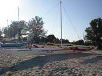 First time entry, a 45 foot Hawaiian Outrigger Canoe is sailed and paddled by a big crew - they are in a new "Exhibition" class. See their Blog.