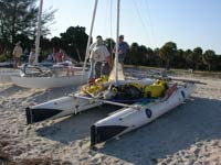 Gary reports that NatureCalls and NatureCalls2 arrived at CP3 at 7:52 this evening. When Gary informed them that the convenience store at Flamingo closed at 8, they made a bee line there for some "real food". They will spend the night and head for the finish tomorrow morning. They reported being overcome by a dirtdevil/waterspout today. They barely had time to release the halyard on the sail before it hit. Then they were showered by dust and debris. It was a close call but nothing broke.