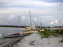 Our overnight stops were wonderful at Sand Island (Robertson Island), Navarre, and Sailboat Cove (or there about). A full day of sailing encouraged everyone to turn in at sundown most nights and anxiety about making the distance the next day had most people getting up at sunrise and the fleet off and sailing around 7am each morning. The exception were some of the larger boats that had to wait for tides to float off the beach.