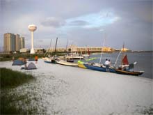 Boats and skipper had to be able to sail to windward and some learned a lot about their boats abilities on this trip. Some about needed changes to their boats to improve windward performance but most about how to get the most out of the windward performance their boats had. The windward sail along Pensacola bay was very enlightening in itself as many of the small boat skppers learned to hug the shoreline to stay out of the worst of the momentum stopping chop.