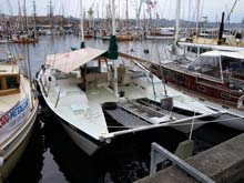 The one disappointment for me was the almost complete lack of Bolger boats.  All I could see was one lone Micro Trawler, tucked away near a floating seafood diner in Constitution Dock.  I did not see any Bolger sailing boats.  Nor, for that matter, did I spot any Michalak designs or Welsford boats.  But then, being more conventionally “good looking”, Welsford craft would not have stood out so much!