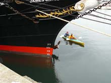 This kayak looked like it was canvas to me and I took it as they paddled in under the bows of the James Craig, pity I missed the name & figurehead in the photo!