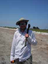 Oyster reefs are evil. Day four was our first really difficult navigational challenge we faced. To reach Army Hole we would need to thread narrow channels in a series of four oyster reefs; Carlos, Cedar, Ayers, and Steam boat. Jason and I stayed up fairly late on nigh three programming our GPS units to assist in finding the entrances to each. After successfully navigating the channels at Carlos and Cedar we were full of confidence that we could be able to get through the last two. As we approached Ayer’s reef I noticed spray from a shallow reef crossing our intended path. The charts showed no such barrier so assuming we were slightly off course, I pulled to windward to cross the south-side of the island right behind the orange Deansbox (sailed by Josh and Carl Clover) and another vessel that I could not identify. Just as Jason and I reached the inlet, I saw David Richey on the docks, waving his arms and screaming at us in an attempt to warn us away from the inlet; it was a trap! Jason and I quickly attempted tacking around to drive back out just as the Clover’s boat appeared to run aground. Jason in the Tenacious Turtle successfully got around and made its escape but poor Ranger with her deeper draft ran aground on the oyster reefs. Raising the board only allowed the wind to push the vessel deeper onto the reef. Deciding that I was stuck beyond hope of sailing out, I got out of the boat and attempted to drag it around the point back into the channel. Carefully making my way around on the reef (oyster shells are very sharp!) I saw Gordo and David approaching. Knowing how difficult the ground was and not wishing to place them into harms way, I tried to tell them to go back, but they told me ‘no way’ (and besides at that point, it was a shorter walk to me than back to the docks). The three of us easily got Ranger around the point and back into sailable water.
