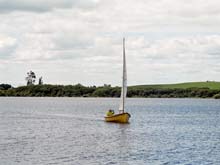 The two sections of the mast were trimmed by approx 3ft each (top and bottom so the joiner was not interrupted), making the mast the exact length for Johns’ lugsail design and a new pulley was riveted to the mast to pass the yard halyard through. A quick trail fit to establish the best fitting point for that halyard, to create the maximum yard height, and I was in business, so to speak. The sail still slid up a normal bolt-rope channel at the luff. On the first sail, it was immediately apparent this was a more fitting sail-plan for the hull. It was softer, better in gusty conditions, easier to handle in a strong blow and easy to de-rig and de-power when ‘landing’. The sail colours were still not fitting for a classical wooden boat design, though.