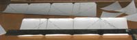| Somewhere in the discussion someone questioned the strength of the radar reflector using only thin aluminum. Here is a strength test with light card stock (the kind of paper used for soft cover on paperbacks--the material used for the paper model shown above). I don't know the exact weight but it was significant. The card stock sprang back whereas the aluminum would probably have remained bent. |