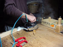 I had a "Eureka" moment and thought of using an electric iron pressed on a wet cloth to steam the wood just like I pressed my uniforms when I was in the US Navy 60 years ago. Luckily my wife had an old electric iron that she let me use after I explained what I was up to. We took some photos of the process and am very happy to say that I was very pleased with the results.