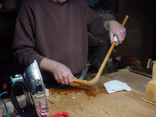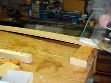 Steaming with the iron set on high with the iron steaming also. The more steam the better. Time     about 30 seconds, you only have to steam the back side of the rib not the kerf side. Keep the iron moving. The     iron forces the steam into the wood. It’s almost like a pressure cooker.
