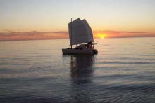 Our good fortune holds. Red is able to steer for the next 80 miles except for 1 hour when I reef us to a single sail to windward. We get 15-18kts during the night but it stays Easterly. Lots of motion but spray on the cabin top only a couple of times. The Moon is a stand up guy, high beams on all night long. Shipping is light too. I get plenty of snooze time in 20 minute chunks. I speak to a carnival cruise ship when we are 2 miles off her port bow. She can see us nicely on her RADAR and says she will be sure to keep clear! As the sun comes up we make our way toward the entrance to the ship canal off Key West. By 0830 we are in the area and have crossed the 95 miles from Havana in 20 hours. We skip the canal and head thru the fishing boats and shoals to the West.