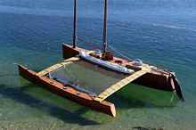 We decide to do this aboard a small proa we had designed, a