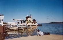 The next morning we drove the falcon to town to eat our last restaurant meal. Then off we went to lock through at Keokuk. The Keokuk lock drops you nearly 40 feet to the river below. The only power plant on the Mississippi is at Keokuk, which accounts for the deep dive of the lock. The lake pool behind the lock stays constant year round and varies less than a foot either way. If you get a chance to travel the Great River, the river lake from Keokuk upriver to Fort Madison is 45 miles long and one of the most beautiful on the river. Going into the 1200 ft lock on a small Terminal Trawler and tying up behind a 6 barge river tow gives you a prospective that creates some awe for the massiveness of the river lock and barge traffic system.
