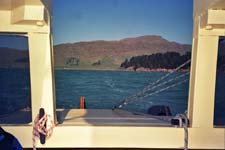 | A typical 25 knot day on Lyttelton Harbour. You can't see much out of salt sprayed windows. |