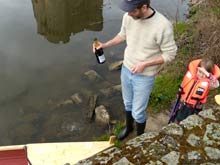 So after the splash and the christening and giving the girls a ride, off I went. About a hundred meters anyway, and then I had to make a portage. Then off I went again, and there was another portage. A couple of hundred meters on, for a change of pace a tree had fallen across the river and there was a layer of brown scum and trash easily 20’ wide piled up against it, and no possible way to get under or, easily, around it. On the one side the banks were pretty high and covered in stinging nettles, and on the other the tree roots had pulled out a giant lump of turf over to a granite cliff face, leaving a scummy pond too deep for my boots.