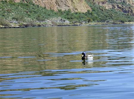 My goal for the day was to travel the periphery of the lake at full speed until the battery power was greatly diminished. How long would it last? Along the way, I encountered many ducks feeding on the lake surface. There must be something I could not see that keeps them nourished. They come here for the winter months from the cold north, and I enjoy their presence. I also brought my camera, so this kept me busy as the trip unfolded. About half way around the lake is an area with a beach, and camping grounds. I decided to head there out of curiosity. Still taking pictures, and not paying attention to the boats direction.