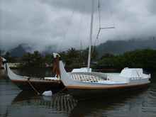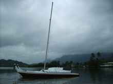 These photos tell it all - the dreaming of many years past materialized into a fine little one-of-a-kind ship which became quite well known on Kaneohe Bay, and is still looking great!
